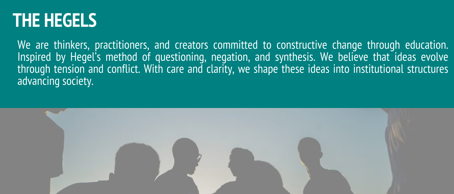 We, The Hegels, are thinkers, practitioners, and creators committed to reflection, dialogue, and constructive change.